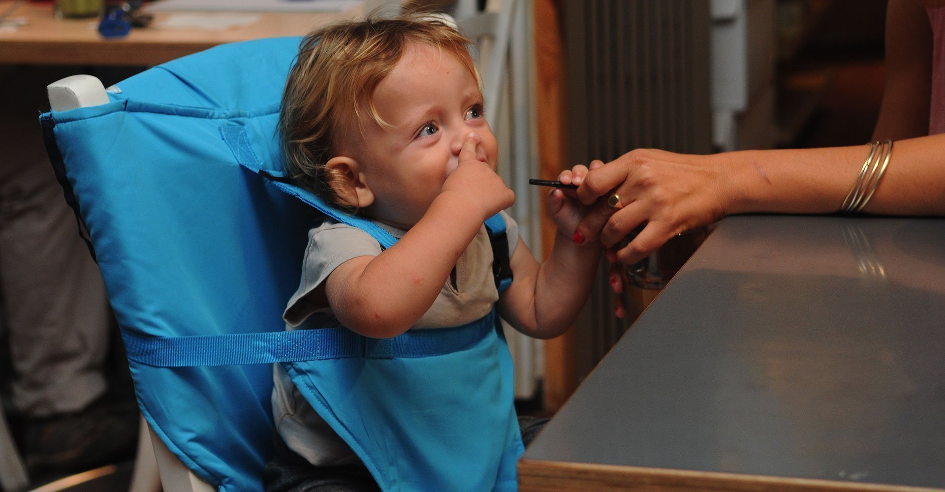 It will hold him securely and provide a safe and clean spot for your child to chow down wherever you go.